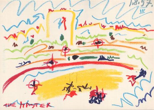 The Master, "Little Targets IV" Oil Pastel on 1961 Picasso Print